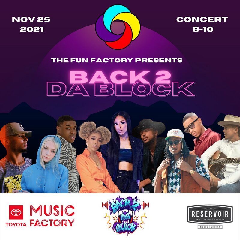 The Fun Factory hosted it’s First Annual Back to da Block party on Thanksgiving Day featuring a watch party and a concert featuring the hottest local acts in DFW as well as headliners including the Walls Group sibling Ahjah and Alice, Carvena from FOX The Four, Roxxet, Coach Tea, D Good, Alex Lambert, Demarica, Chloe and dancers Hollywood and Djon.